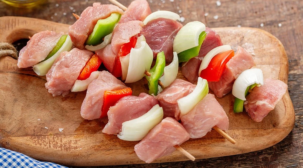 - Armamos las brochetas: Intercalando la carne, el pollo y las verduras-pimientos y cebolla-; marinamos con oliva, sal y pimienta.